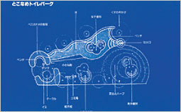 ■日本国中の公共トイレ美化のトリガーとなった常滑トイレパークの図面(左)と実際の建物(右)